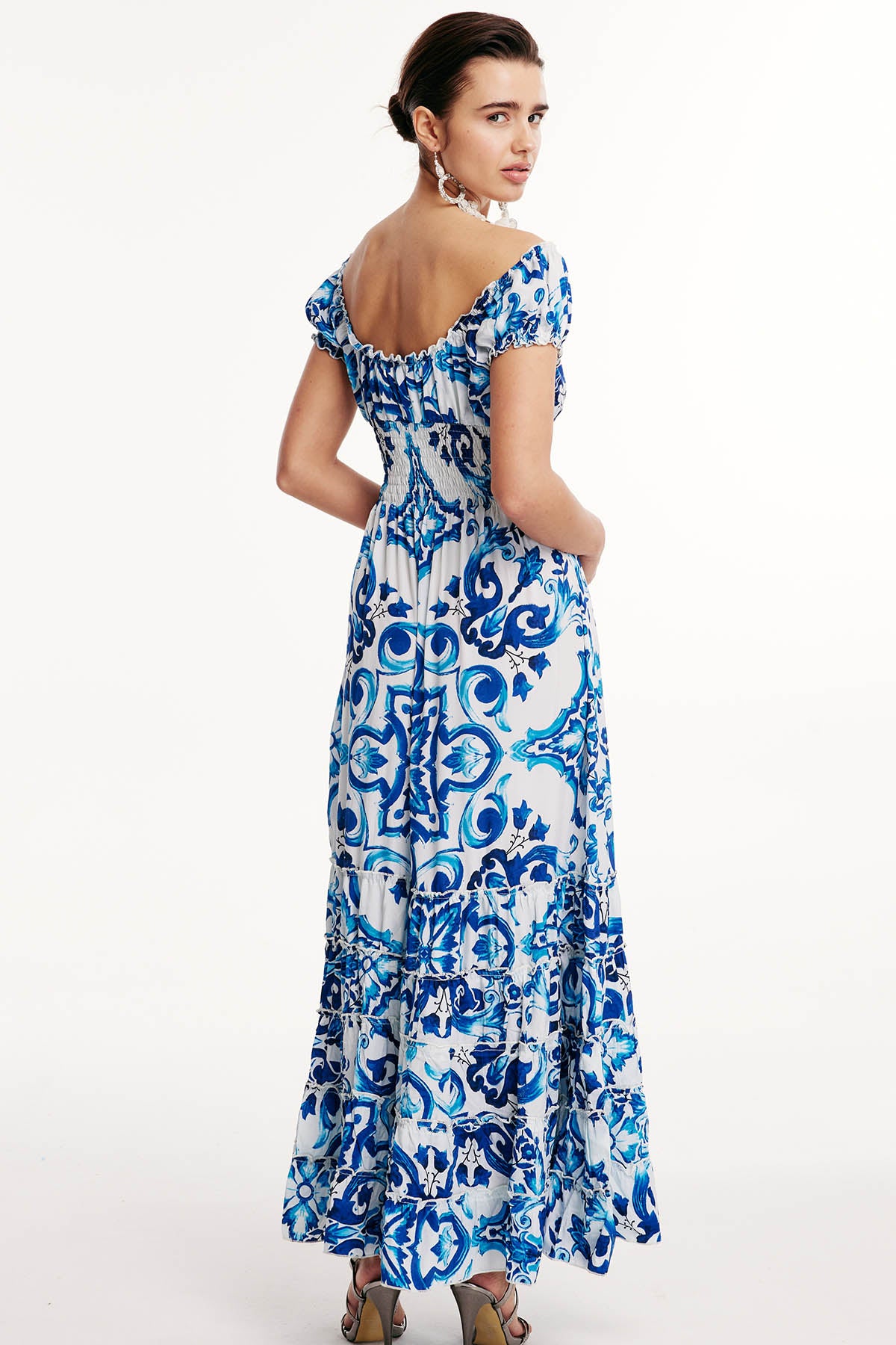 Mavi Beyaz İpek Elbise